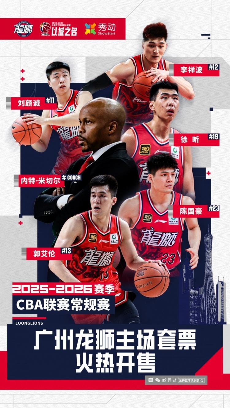 广州常规赛套票将在今晚20:00准时开售!并肩作战开启主场新征程